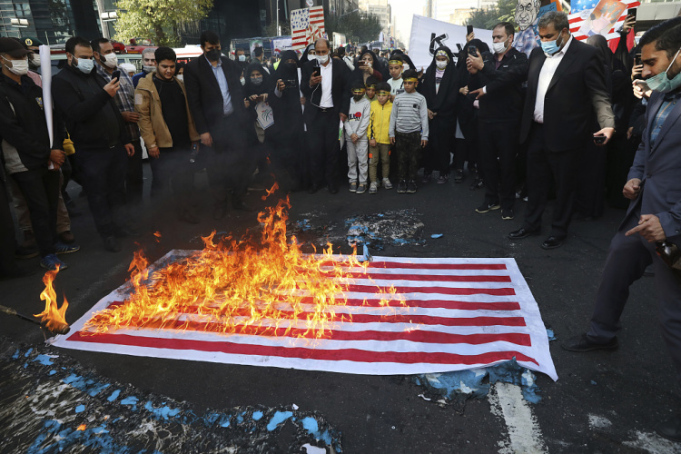 当地时间11月4日,伊朗民众在首都德黑兰美国驻伊朗大使馆旧址前举行大规模反美集会,以纪念占领美使馆42周年。民众手持反美标语,高呼反美口号,以此反对美国的霸权主义。伊朗伊斯兰革命卫队司令侯赛因·萨拉米也在集会现场发表讲话。据了解,1979年11月4日,伊朗激进学生闯入美国大使馆,扣押美国使馆人员长达444天,两国关系恶化,这一事件也被称为"伊朗人质事件"。