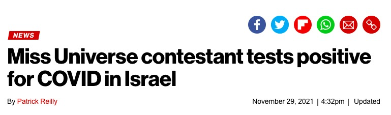 环球小姐选美大赛的一名选手在抵达以色列后,新冠肺炎检测呈阳性