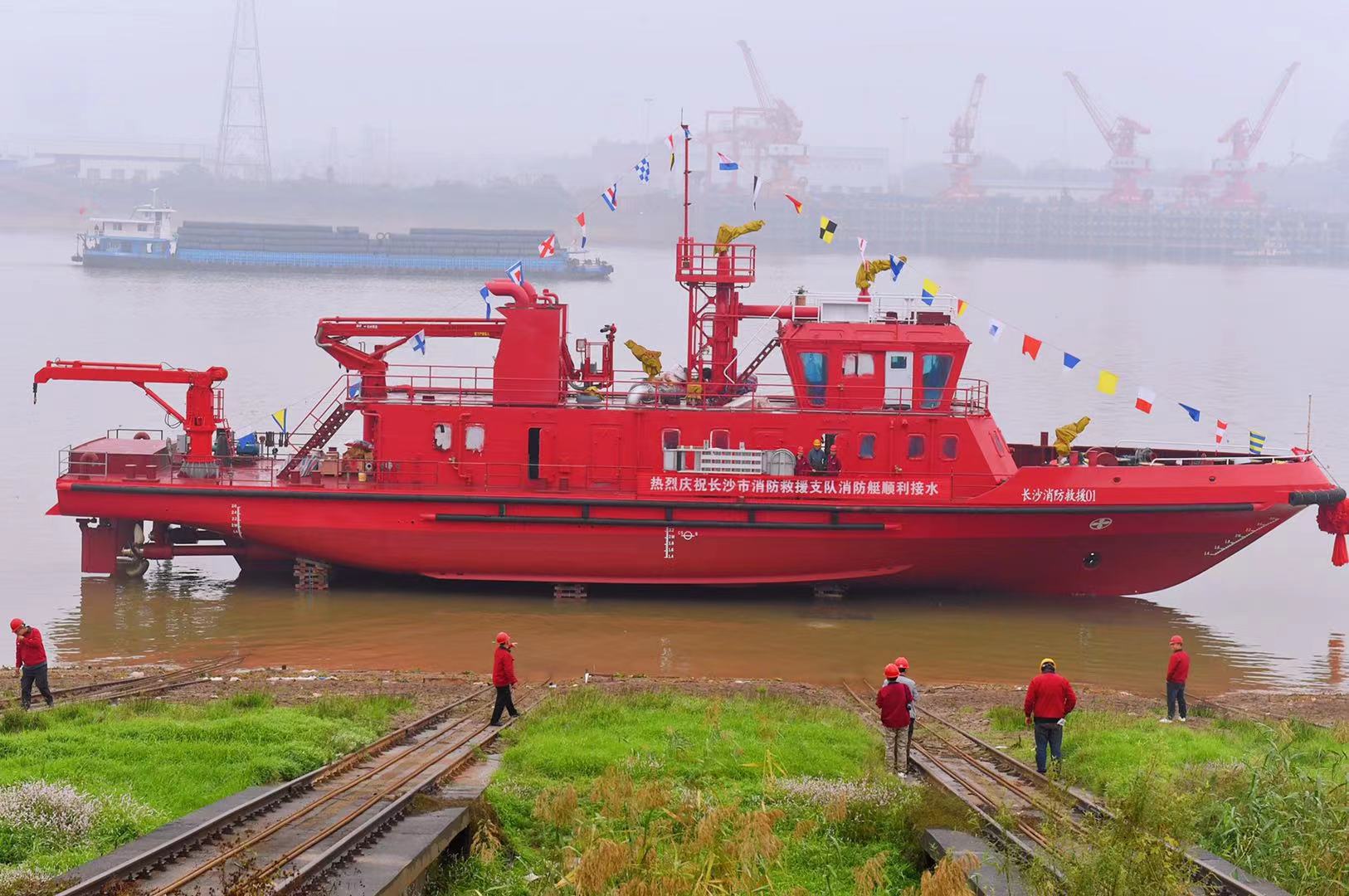湖南最大综合型消防救援艇下水