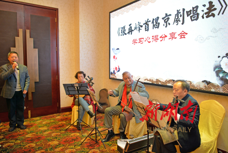 湖南日报·新湖南客户端11月21日讯(记者 龙文泱 摄影记者 李健)今天,由风和京剧社主办的张再峰首倡京剧唱法学习心得分享会在长沙举行。会上,由湖南省京剧保护传承中心国家一级演奏张再峰新创的《蝶恋花·答李淑一》《菩萨蛮·惊梦》诗词对唱发布。