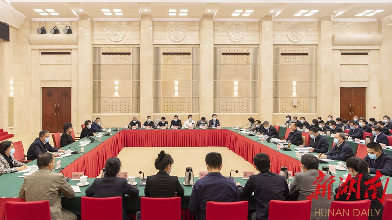(11月13日上午,全国政法队伍教育整顿中央第十督导组向我省反馈第二批政法队伍教育整顿督导意见反馈会现场。湖南日报全媒体记者 唐俊 摄)