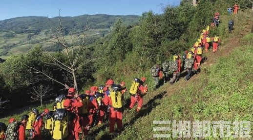 第三,搜救路线距离较远,从山脚前往搜索区域需要爬山约4个小时,随着搜索范围不断扩大,山中无路,行进困难,不具备夜间搜索的条件,队员往返宿地耗时较长。