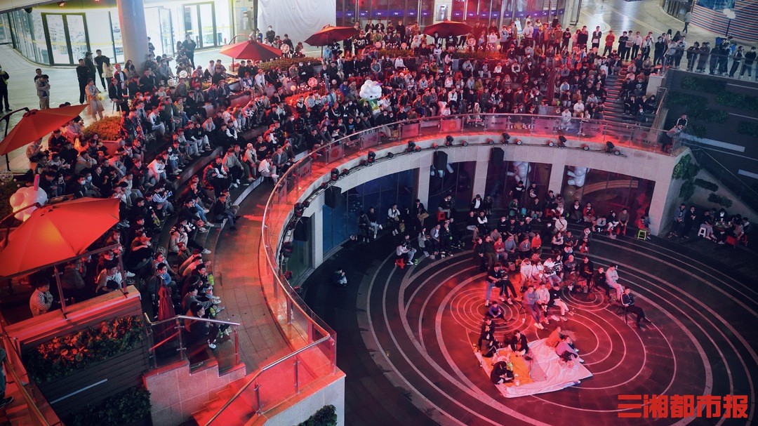 (11月7日零时,在长沙市开福区润和国际广场,很多年轻人都竞相来看EDG电竞比赛。全媒体记者 王珏 摄)