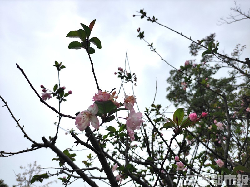 花香弥漫中,记者在园区慢慢逛了一圈,发现除了梅花,还有两棵同样忘了季节的海棠开得不错,枝头有的展开花瓣,有的打着小卷,也是惹人醉。
