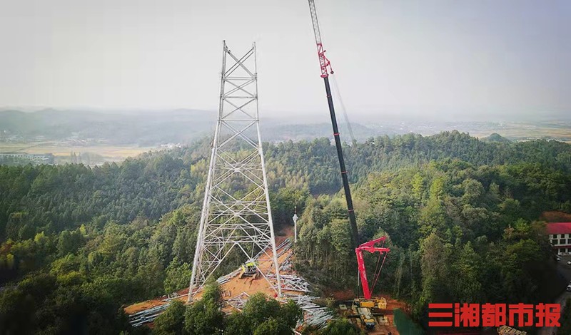 三湘都市报·新湖南客户端11月2日讯(全媒体记者 李成辉 通讯员 邹同华)11月1日,1000千伏南阳-荆门-长沙特高压交流工程线路工程(12标段)N6150号铁塔组立现场,一台450吨的红色吊车缓缓收起吊臂,这是湖南省送变电工程有限公司首次使用大吨位吊车圆满完成铁塔组立任务。“使用30吨、220吨、450吨多型号吊车进行流水式吊装组塔,既安全又高效,减少了高空人员作业频次,有效缩短组塔周期。”该公司项目总工邹永兴表示。