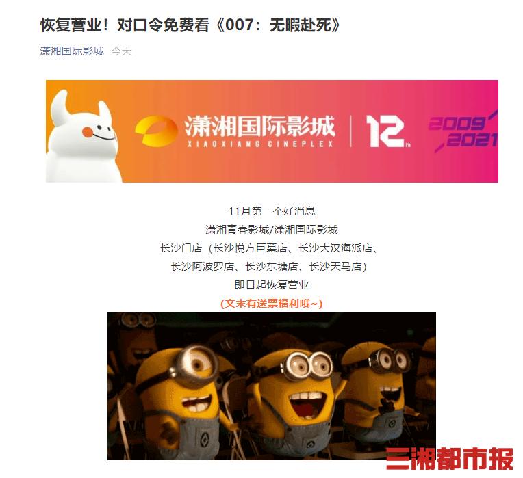 可以看电影了!长沙多家影院恢复营业