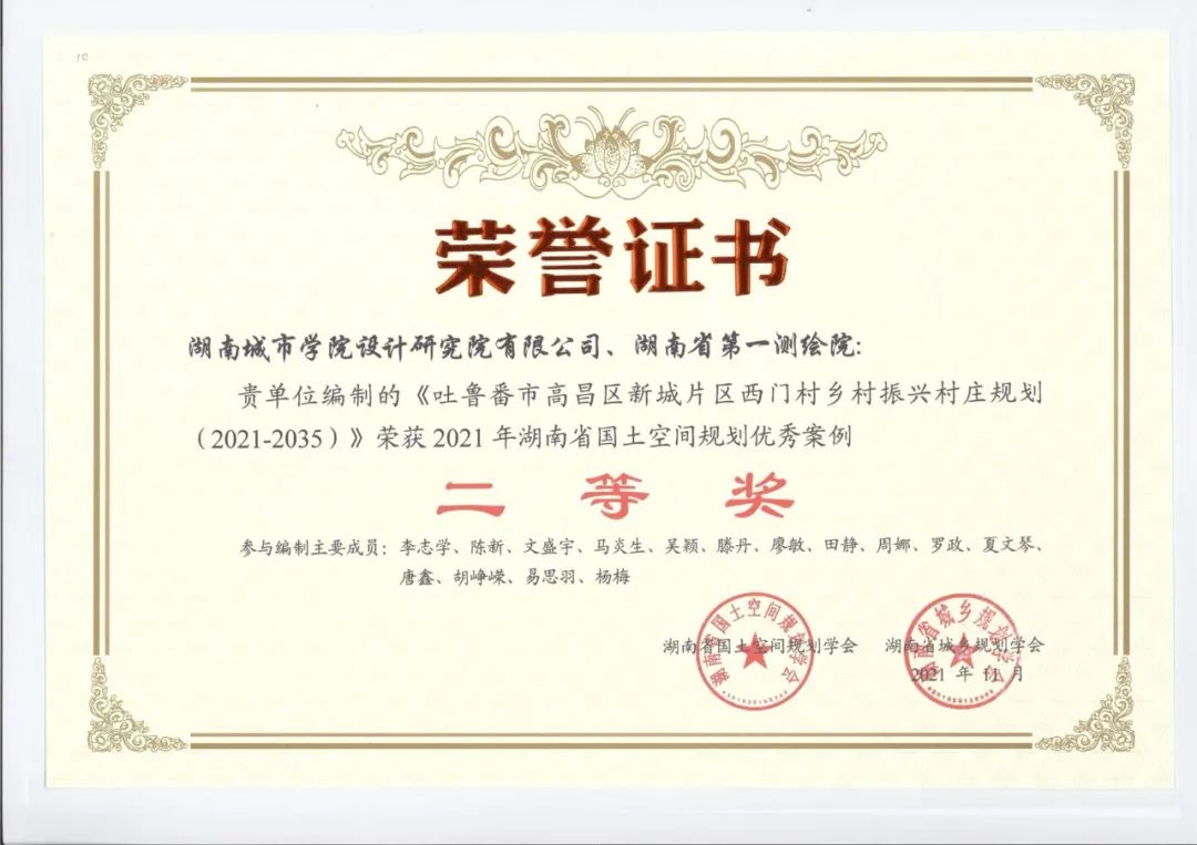 在陈新的牵头推动下,规划单位顺利完成了高昌区新城片区西门村、葡萄镇布拉克村,鄯善县辟展镇乔克塔木村巩固脱贫攻坚成果和乡村振兴示范点村庄规划(2021-2035年)。西门村规划荣获2021年湖南省国土空间规划优秀案例二等奖。