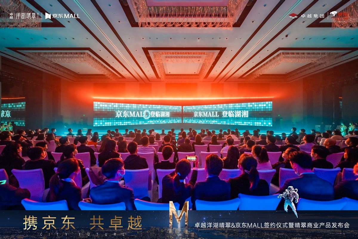 11月19日,卓越洋湖晴翠&京东MALL签约仪式暨晴翠商业产品发布会举行。卓越洋湖晴翠&京东MALL,是卓越集团于洋湖中心打造的潮流商业综合体,总建筑面积约10万平,其中包括了携手京东集团打造的湖南首家京东MALL,为长沙商业发展再添一笔新的色彩。