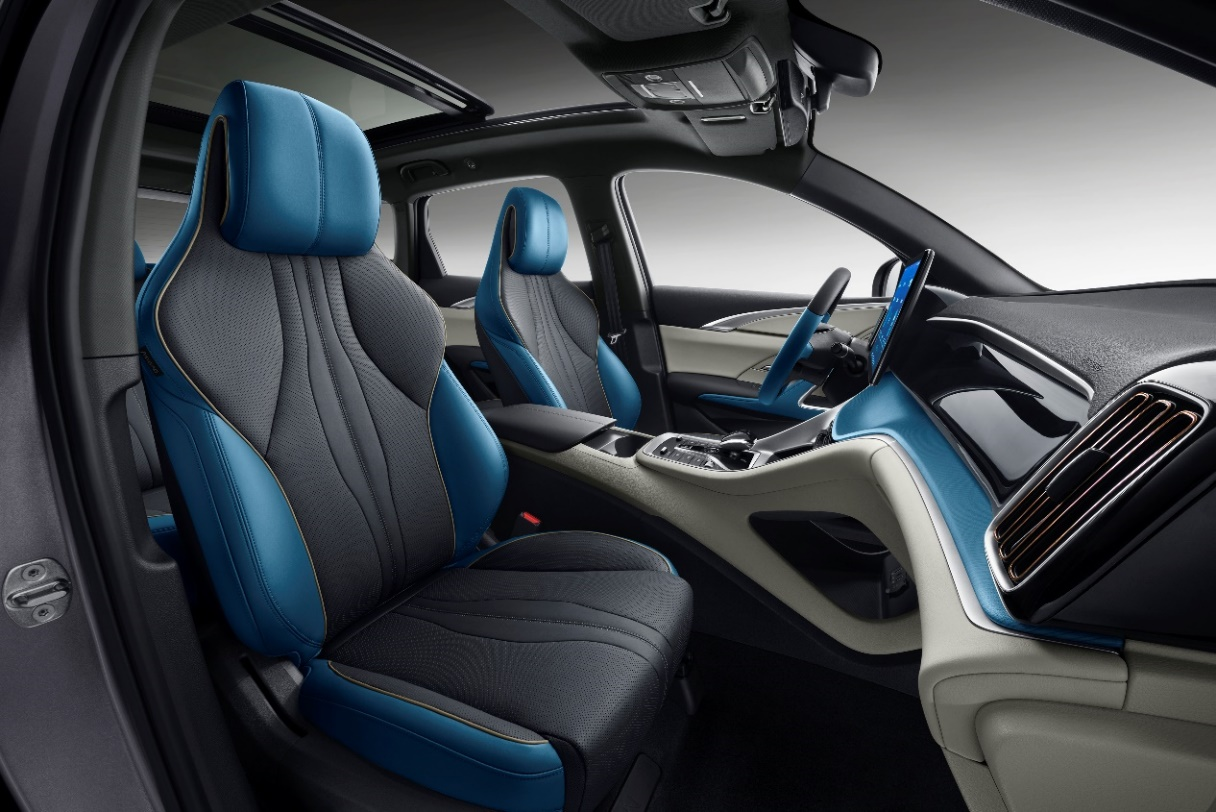 其次,大获认可的釉玉蓝+日蚀蓝的内饰得以保留,该设计灵感源自宋代美学巅峰之作《千里江山图》,通过深浅的不同蓝色进行巧妙搭配,不仅视觉带来清新别致感,营造舒适典雅的氛围感,同时也展现出丰富的生命力。