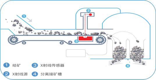 智能矿石分拣系统利用机器视觉与深度学习、自动化控制、机电一体化等技术,结合高性能计算和大数据技术,模拟人眼视觉和大脑,利用不同矿石所含不同元素所独有的特征光谱成像原理,通过计算机系统辨析矿石对X射线的穿透、电离和对特定光谱的透射率、反射率、吸收率效应等效应;矿石表面的蚀变成色、纹理、荧光反应等特征;对矿石进行快速精确的定性定量分析并有效分拣矿石和废石(指低于边界品位的矿石)。