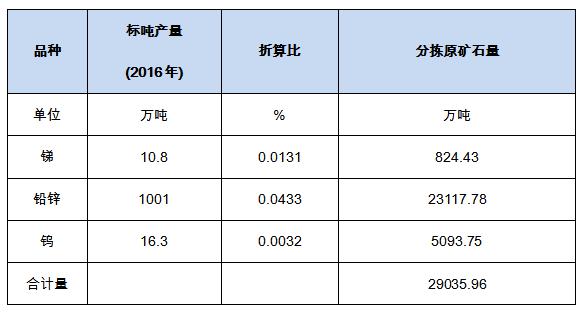 但是,并非所有品种均采用上述方法,根据国家统计局和相关有色金属行业协会的统计资料,亦可查明部分品种的分拣原矿石量,如钨矿。
