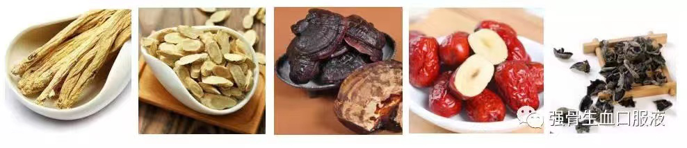 强骨生血口服液主要成份有骨液、党参、黄芪、灵芝、大枣、黑木耳。其中,骨液可补充骨折愈合所需微量元素。在骨折愈合过程中体内钙、铁、锌、锰等矿物元素起着重要的作用。钙盐的沉积直接影响骨痂的钙化,锌在骨盐的形成过程中发挥重要作用;锰参与骨折端胶原纤维以及骨痂中黏多糖合成过程;铜在弹性蛋白和胶原蛋白的交联中起到重要作用,缺乏时会影响骨胶原的合成和稳定。这些矿物元素的异常会直接影响到骨折愈合。