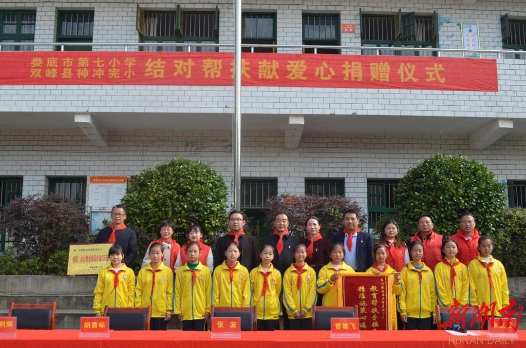 在爱心捐赠仪式上,神冲完小李利辉校长首先对娄底七小以及爱心人士为该校捐赠彩色打印机、体育用品和校服表达了感谢。他表示,两校自今年七月成为结对帮扶学校以来,娄底七小的领导们多次深入神冲完小调研,量身制定了帮扶方案,从学校文化建设、管理理念、课堂教学等方面进行全方位的帮扶和指导。