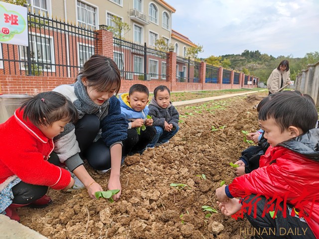 科教新报·新湖南客户端讯(通讯员 覃业彦 覃业顺)“一只手护苗,另一只手扒拉一些泥土盖住苗根……”11月12日,天和日丽,户外自主活动时间,一群活泼可爱的幼儿娃在班主任申蒙子的示范下,在菜地里学习植栽菜苗。这个暖心的场面定格在石门县渫水河畔的雁池乡中心幼儿园的户外劳动种植园里。
