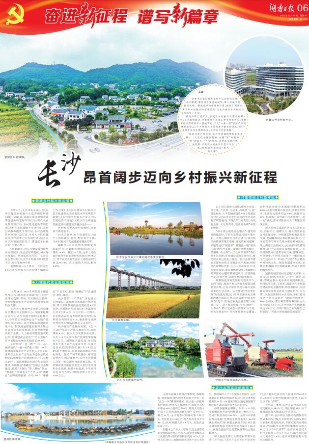 今年5月,长沙率先全国出台《长沙市建设乡村振兴示范市规划纲要(2021—2025)》,部署实施巩固脱贫成果促进共同富裕专项行动、现代农业发展专项行动、农村建设提质专项行动、农村生态环境提升专项行动、农村公共服务提优专项行动、乡村治理现代化专项行动方案、乡村人才队伍建设专项行动等七大专项行动,结合长沙实际做出顶层设计,搭建起乡村振兴的“四梁八柱”。