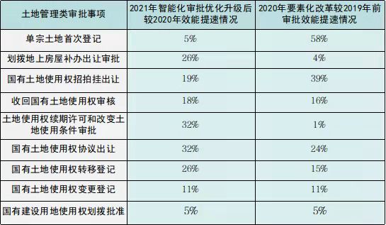 (2020至2021年土地管理类部分审批事项智能化、要素化审批改革效能提速情况)