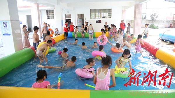 堵而抑之,也要疏而导之。今年,由耒阳市工商联牵头发动、相关爱心企业捐赠的30个充气式泳池于7月15日起在各乡镇(街道)投放。泳池免费向未成年学生开放,并安排专人进行维护管理、清洗消毒、培训游泳技能等。