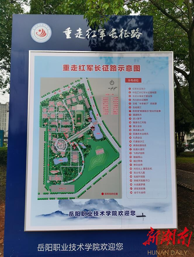 湖南日报·新湖南客户端(记者 徐亚平 通讯员 金慧莉 李瑾轩)近日,在岳阳职业技术学院里,一场别开生面的“重走长征路”主题活动火热开展。2000余名师生以红军长征历史为背景,结合学院设计的长征路线,回顾红色历史,打卡红色景点,在寓教于乐、强身健体的活动中学习革命传统文化,传承红色基因。