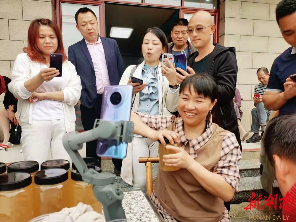 “现在一有空就直播,推介蜂蜜和农产品。”杨朝辉在“湖南蜜蜂姐姐”视频号里,除了介绍自家的蜂蜜和普及辨别真假蜂蜜常识外,也推介乡亲们的腐乳、酸藠头、红薯粉和坛子菜等土特产。朴实的画面、真诚的话语,杨朝辉的粉丝日渐增多。她介绍,有一次,看见邻居大嫂做的红薯粉卖不出去,感到十分无助。其实这里的农产品都是纯手工制作、没添加剂的生态产品。直播带货,土特产成了畅销货。杨朝辉说,农家手工做的腊八豆豉,如今一天要发货80多瓶。