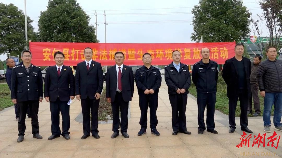 11月2日16时许,李某某、龙某某等5人将6000余尾鱼苗在安仁县检察院、县公安局、县农业农村局、县环保局、县电视台等单位工作人员以及附近群众见证下,投放进安仁县永乐江,这标志着安仁县首例渔业生态环境损害赔偿磋商案的成功办理。