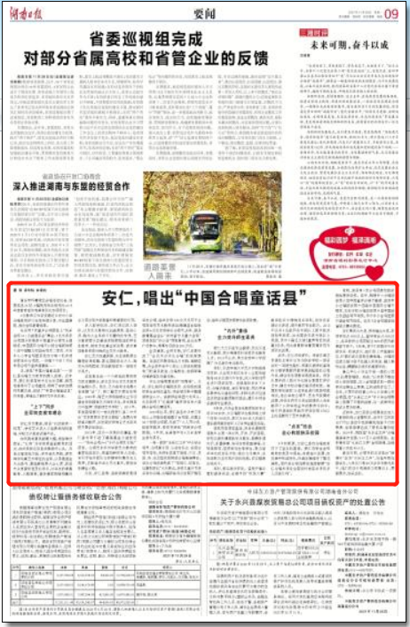 为此,安仁县委、县政府高度重视学生合唱,每年安排100余万元用于合唱等学校艺术教育活动;德清基金每年安排6万元支持学生合唱节;去年,该县教育基金会以“农村留守儿童大合唱”项目发起“99公益”网络募捐,社会各界广泛参与,筹得专项资金250万元。