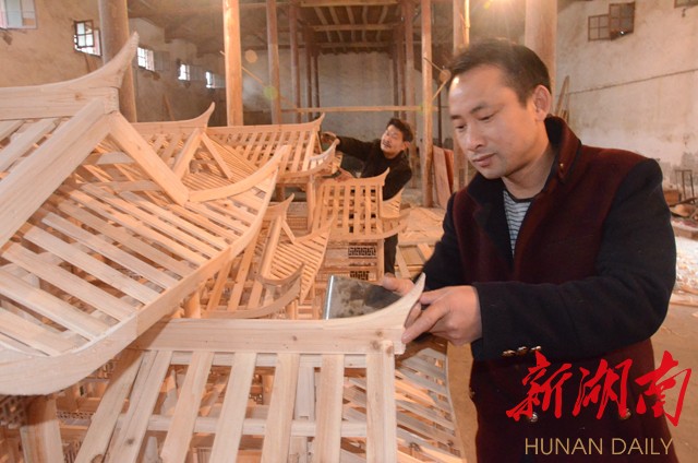 一屋成,美名传,找彭小明建吊脚楼的人慢慢多起来。彭小明发现了其中的商机,感到传统吊脚楼迎来了新生的“春天”。于是,他成立溆浦湘楚木作古建工程有限公司,聚拢一帮木匠,边接业务、边收徒传艺。目前,在公司做事的木匠加徒弟有100多人。
