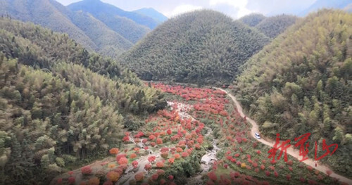 永州蓝山县湘江大峡谷:红枫层林尽染 进入最美观赏季
