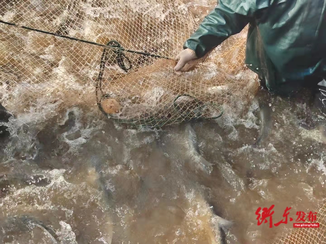 在衡东县石滩乡石金村博雅生态养殖基地内,村民们正忙着拉网起鱼,鲤鱼、鳙鱼、草鱼等多种淡水鱼喜获丰收,呈现一片丰收场景,博雅生态养殖合作社负责人肖佳成介绍,这已经是今年基地内的第三次大型捕捞。