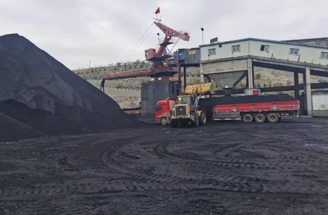 ↑西部一家煤矿正在向外运输煤炭