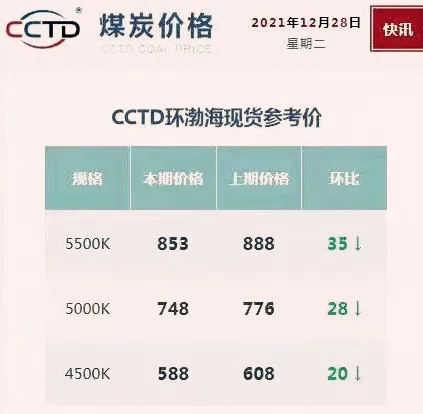 ↑截至12月28日,煤价仍在下跌