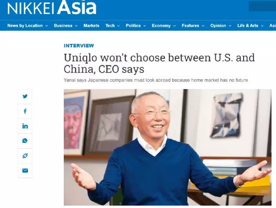 《日经亚洲评论》:CEO说,优衣库不会在美中之间“选边站”