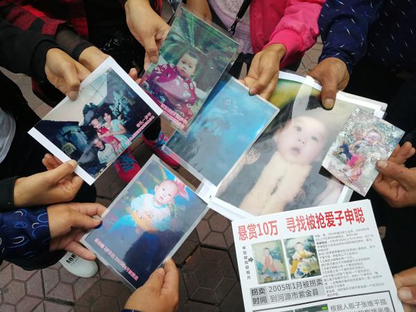 ↑梅姨”案部分家长出示被拐儿童照片。本文图片均为澎湃新闻记者 朱远祥 资料图