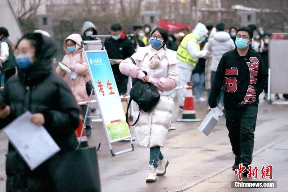 12月25日,2022年全国硕士研究生招生考试开考,考生在陕西省西安市的西安医学院考点准备入场。 中新社记者 张远 摄