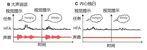 当说出同一个词语时,「大声讲」和「内心想」,大脑皮层的信号是相似的;HFA:单次高频信号