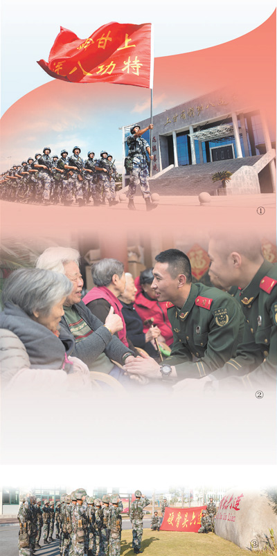 11月初,在纪念建连90周年活动中,空降兵某旅“上甘岭特功八连”一场别开生面的新兵入连仪式在湖北红安县黄麻起义和鄂豫皖苏区纪念园隆重举行。仪式现场,8名新兵从连队主官手中接过荣誉编号,并大声地喊出自己的荣誉编号,心中充满了自豪感。