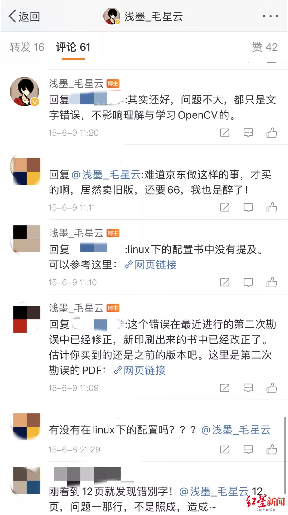 而通过查询毛星云的知乎、微博、CSDN等社交账号,红星新闻发现,毛星云还是一名“技术类网红”,在相关社交平台上拥有许多技术类粉丝。在其过往发布的原创文章下,曾有许多网友慕名而来,就自己遇到的IT难题向其留言询问,毛星云也一一进行回复解惑。
