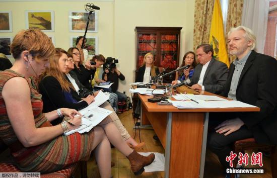 资料图:阿桑奇被英国警方逮捕前曾召开记者会,称自己健康状况不断恶化,希望自己能重获自由。