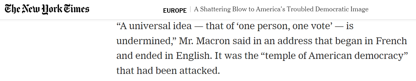 △《纽约时报》报道马克龙谈美国国会暴乱