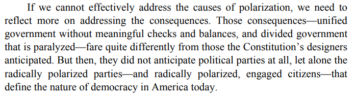 加州大学伯克利分校出版的《加州法律评论》指出,美国宪法的制定者完全没有预料到美国如今被党争贯穿的政治局面。
