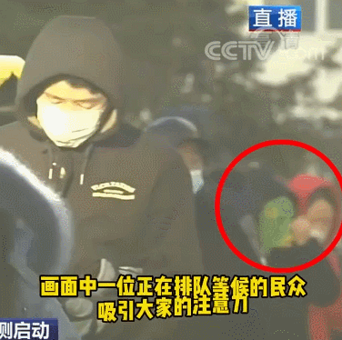 随着队伍的前进,这位画风清奇的市民也逐渐入画,摄像师傅还特地把镜头对准了他。