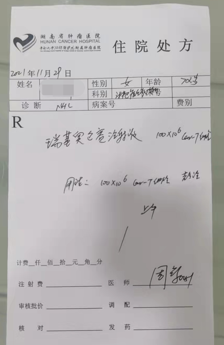 湖南首张CAR-T细胞疗法处方。均为长沙晚报通讯员 彭璐 摄
