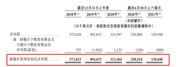 过去的三年中,微博的营收增速较慢,且受疫情影响,2020年营收较前两年还出现了下滑。招股书显示,2018年、2019年、2020年微博的收入分别为17.19亿美元、17.67亿美元和16.9亿美元。