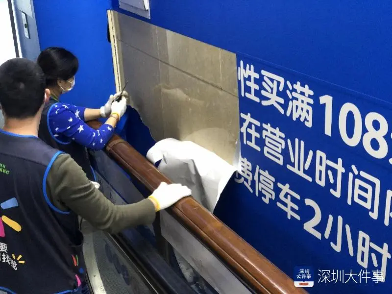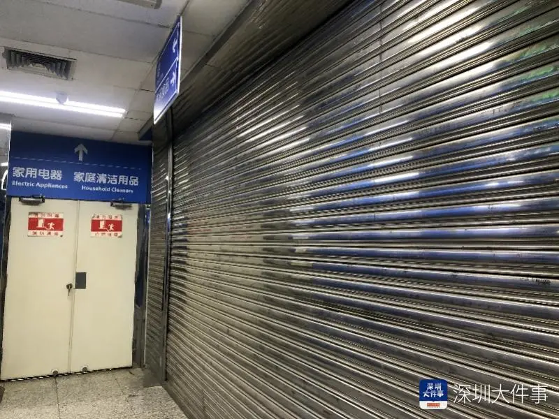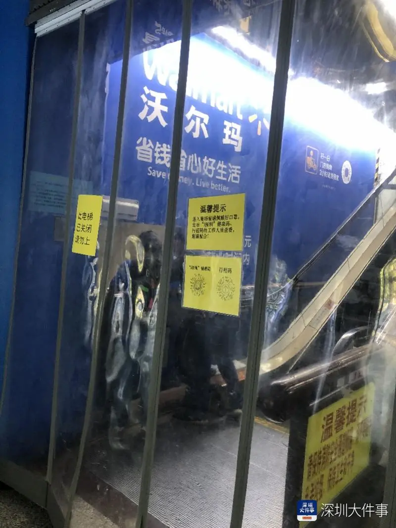 除沃尔玛外,整栋裙楼内,所有门店商铺也都为闭店状态,纷纷张贴出了停业公告。现场,沃尔玛二楼商超口已经关闭,仅余两位工作人员对扶梯旁墙上的沃尔玛墙贴进行清理,其告诉南都记者,沃尔玛内部正在拆除货架。隔着紧闭的铁门,南都记者可以听到内部货架拆除发出的声音。