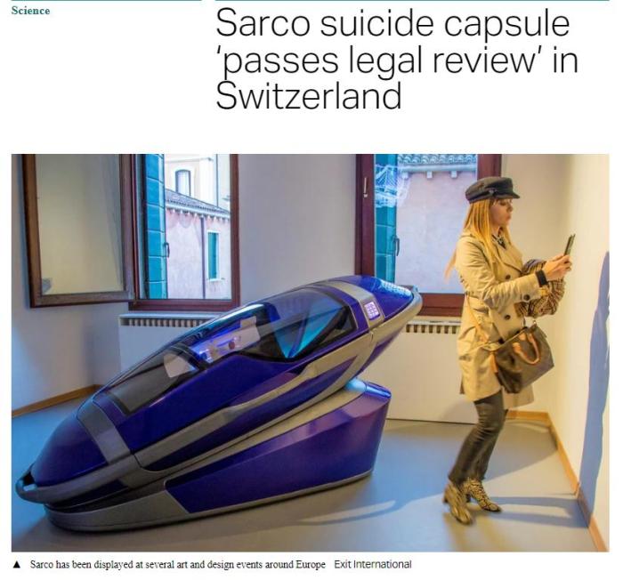 一款3D打印安乐死胶囊仓即将在瑞士上市 死亡过程30秒