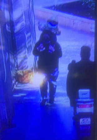 相关监控视频截图显示,女性嫌疑人身材微胖,带着口罩,男童骑坐在其脖子上。