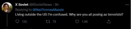 有网友似乎是美国以外的外国公民,发问讽刺道:“在美国外住着,我很困惑。为什么你们摆起姿势都像恐怖分子?”↓