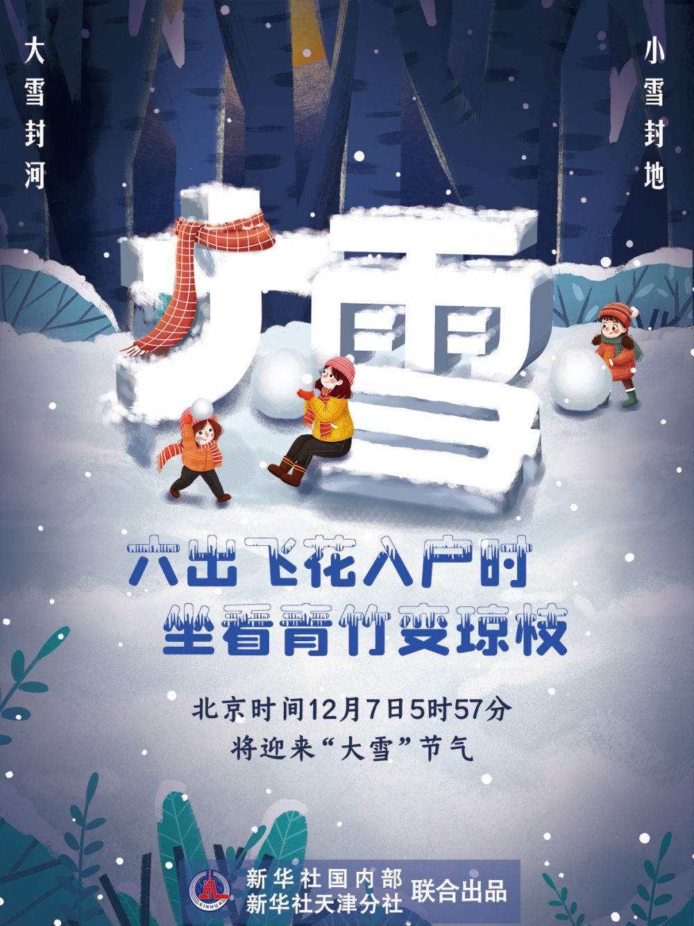 《2021年中国天文年历》显示,北京时间12月7日5时57分将迎来“大雪”节气,标志着仲冬时节开始。专家表示,此时节,我国越来越多的地区会迎来降雪,雪后气温下降,寒冷加剧,公众要注意防寒保暖,避免流感等疾病侵扰。
