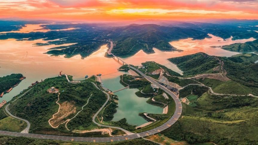 航拍位于河南南阳的南水北调中线工程陶岔渠首