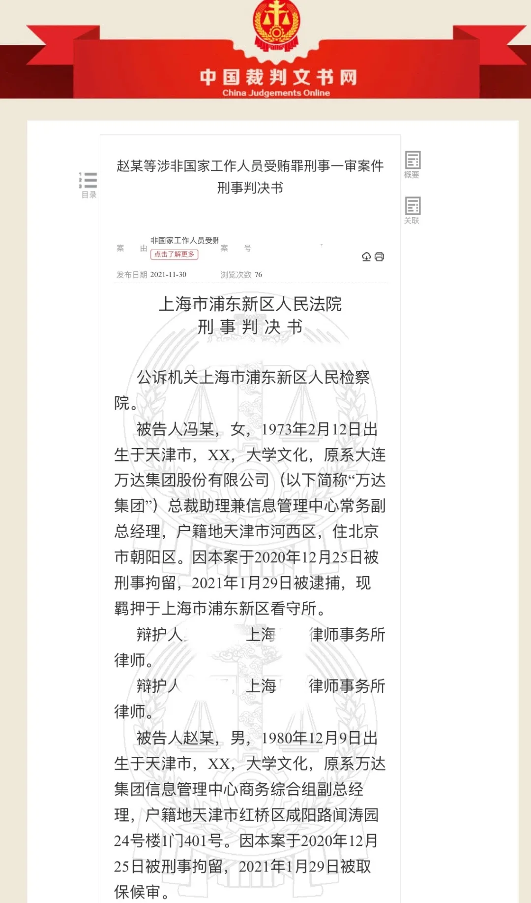 近日,中国裁判文书网上公开了一份涉大连万达集团股份有限公司(以下简称“万达集团”)贪腐案的判决书。