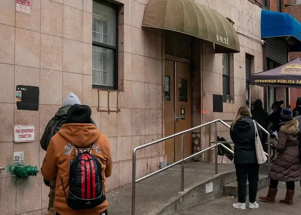 11月30日,在纽约东哈莱姆区注射点外排队吸毒的人群。图源:纽约时报